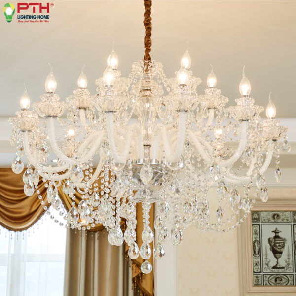 xảo và hàng trăm mảnh pha lê K9 lấp lánh, chiếc đèn chùm này kết hợp hoàn hảo