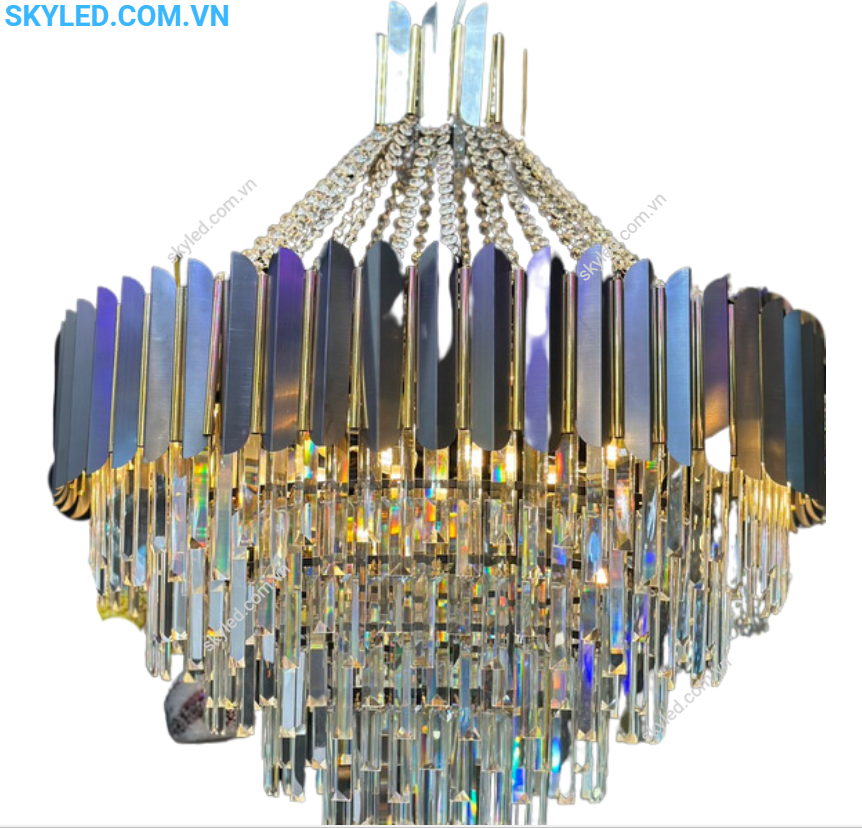 Sản phẩm sử dụng các thanh pha lê K9 với độ tinh khiết cực cao. Khi có ánh sáng đi qua, các cạnh cắt kim cương sẽ tạo ra hiệu ứng tán sắc ánh sáng lung linh, mang lại vẻ đẹp quyền quý và sang trọng cho không gian.